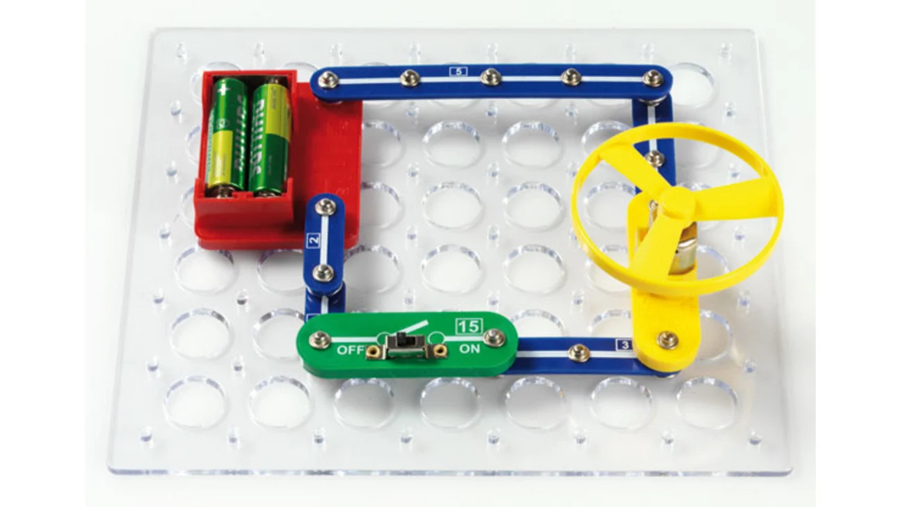 Der Elektronik-Lernbaukasten mit bis zu 340 Schaltungen, mit einfachen Experimenten zum Thema, Leitfähigkeit, Bewegung und Licht. Der Baukasten bietet Schaltungen zur sensorischen Steuerung von Effekten und Musik, die Erzeugung von Rückkopplungen durch Schwingungen und unterschiedliche Gatter zur Steuerung von Licht.